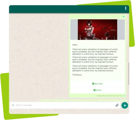 ✅ 1. Bulk Messaging with Automation Easily send messages to thousands of customers at once. Schedule campaigns to run at specific times and ensure your audience receives your messages promptly. This feature is ideal for promoting new products, offers, or services.